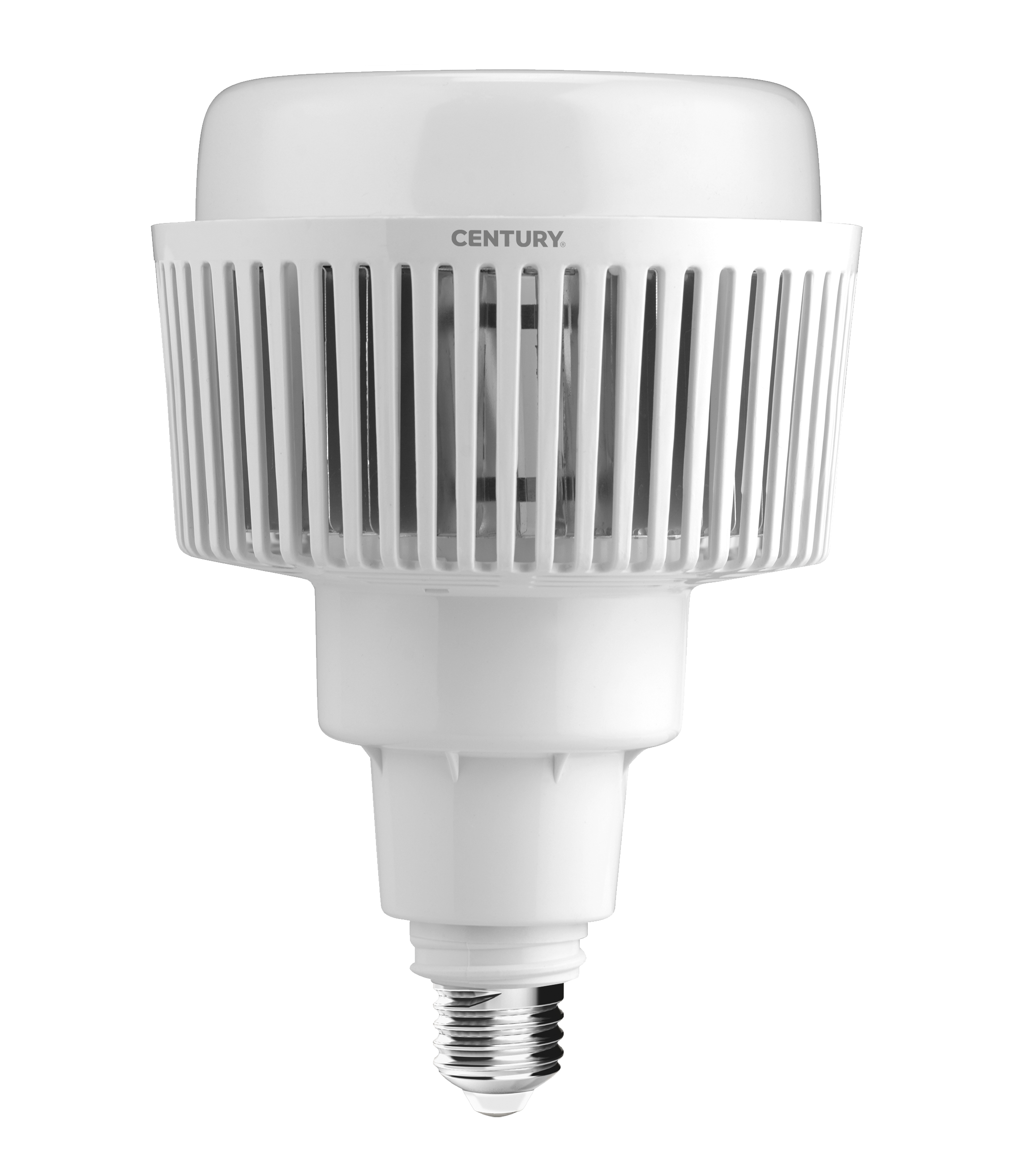 CENTURY LED zdroj 100W E40 4000K IP20 - MXR-1004040 určen pro toho, kdo hledá kvalitní vysoce výkonný LED zdroj za přijatelnou cenu. Hodí se do hal, kde nahazuje dosluhující výbojky. Je určeno pro přímé zapojení na běžných 230V do otevřených svítidel. Není určeno do prašných a venkovních prostor. Tělo je z termoplastu s žebrovaným chladičem z hliníku.