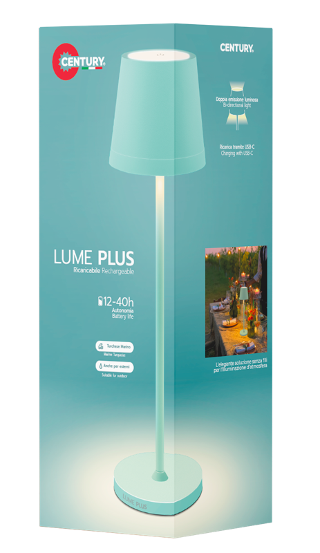 CENTURY Lume dobíjecí stolní lampa světlo pro vaše okolí. Přinášíme vám exkluzivní dobíjecí stolní lampu CENTURY Lume, která zaujme svou kvalitou, designem a výkonem. Vychutnejte si úžasnou atmosféru až 190 lumeny svítivosti při příjemné teplotě 2700K, která vytváří teplé a přívětivé prostředí.