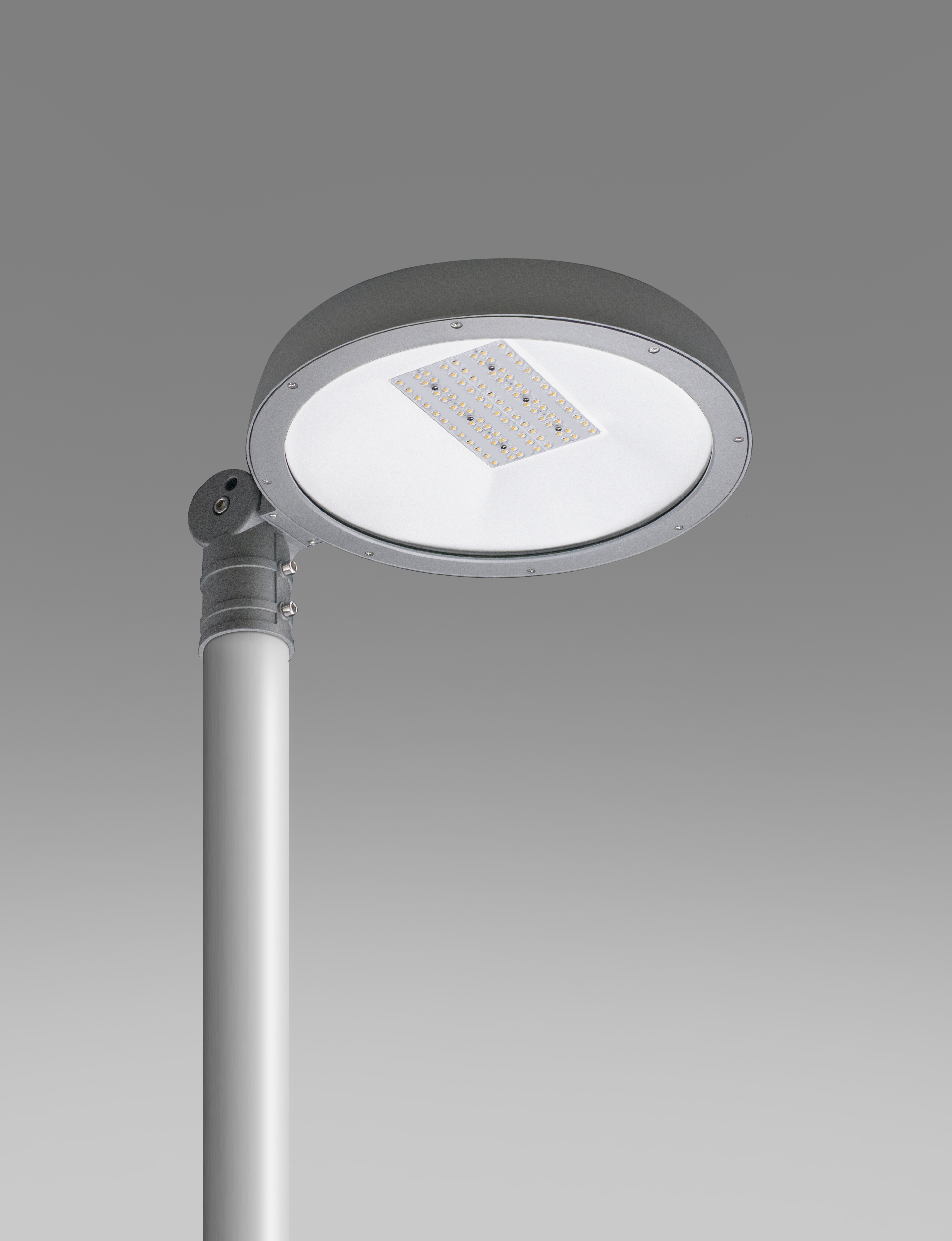 Stabilní pouliční osvětlení z tlakově litého hliníku, vybavené temperovaným sklem odolným vůči teplotním šokům. Spojka na sloup ø60mm. Snadná kontrola v naprosté bezpečnosti: Sériový odpojovač s dvojitou izolací, který přeruší elektrické napájení při otevírání krytu.