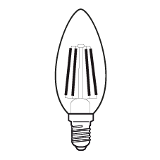Žárovka vhodná do nástěnných lampiček, stropních lustrů, stolních lampiček a jiných svítidel se závitem E14.