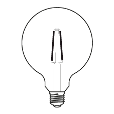 Zlatá skleněná žárovka GLOBE EPOCA FILAMENT z řady CENTURY INCANTO ve velmi teplé žluto-červené barvě svícení.