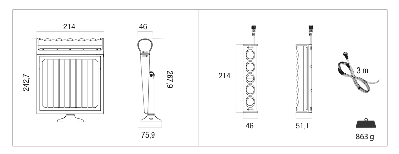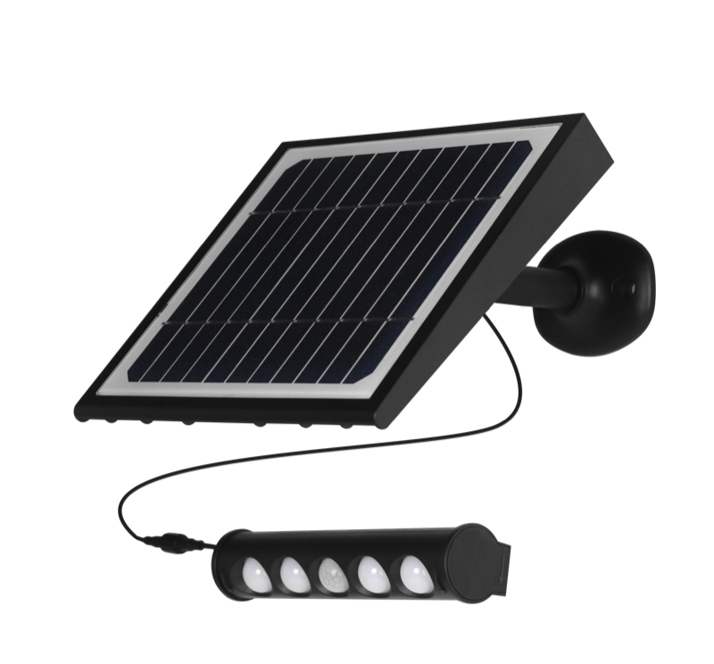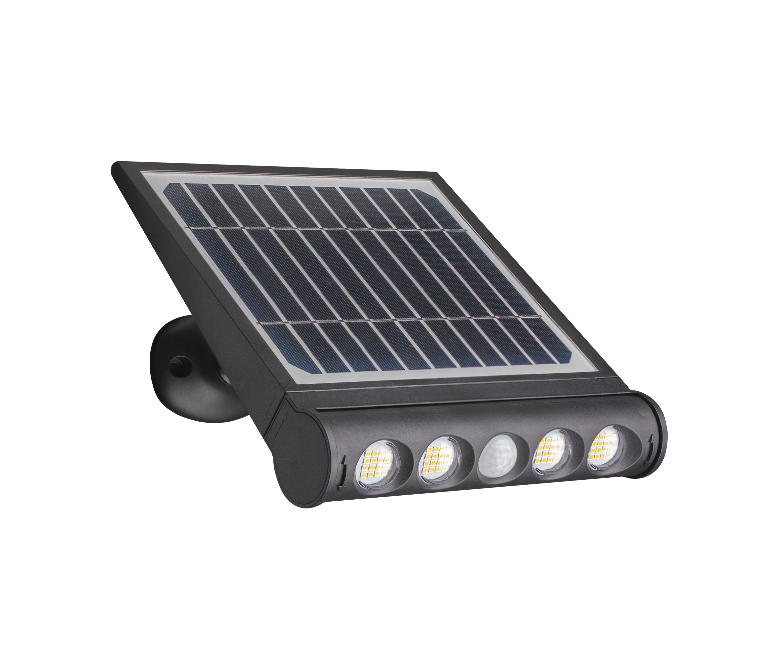 Výkonný solární LED reflektor GENIUS vybavený vypínačem a oddělitelným fotovoltaickým panelem pro přizpůsobení jakémukoli typu instalace disponuje 3m dlouhým kabelem. Svícení s PIR senzorem s dosahem až 8m lze natáčet dle potřeby a tím směrovat do požadovaných míst.