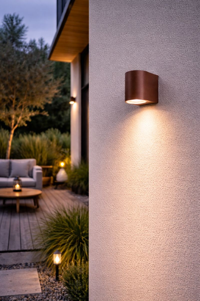 Elegantní řešení pro moderní architekturu s důrazem na detail. Nástěnné svítidlo CENTURY AXO v hnědém provedení zaujme zaobleným tvarem a teplým barevným tónem, který působí přirozeně a harmonicky. Směrové svícení dolů vytváří jemný světelný kužel, jenž decentně zvýrazní fasádu domu, vstupní prostor nebo stěnu v interiéru. Díky krytí IP54 je svítidlo ideální volbou i pro venkovní použití.