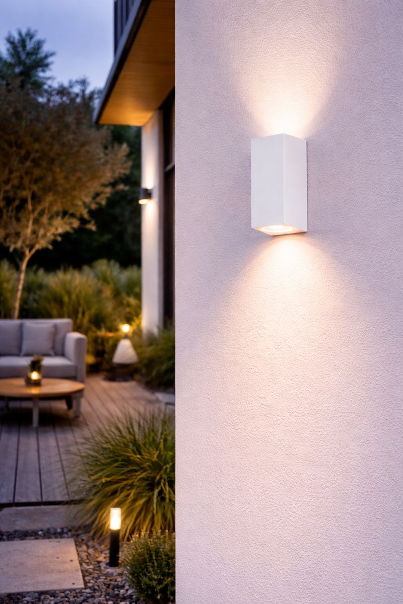 Minimalistické svítidlo s důrazem na funkci a čistý vzhled. Nástěnné svítidlo CENTURY AXO v bílém provedení se svícením dolů je ideální volbou pro moderní fasády i interiéry, kde je kladen důraz na decentní, ale účinné osvětlení. Dvojité světlo směřující dolů vytváří soustředěný světelný kužel, který efektivně nasvítí stěnu, vstupní prostor nebo komunikaci kolem domu. Díky krytí IP54 je svítidlo vhodné i do venkovního prostředí.
