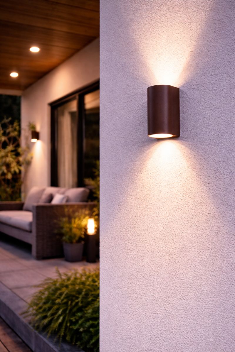 Elegantní architektonické svítidlo pro efektní nasvícení stěn. Nástěnné svítidlo CENTURY AXO v hnědém provedení se svícením nahoru a dolů vytváří symetrické světelné kužely, které zvýrazní strukturu fasády nebo stěny v interiéru. Zaoblený tvar dodává svítidlu jemnější vzhled, zatímco teplý hnědý odstín působí přirozeně a nadčasově. Krytí IP54 jej předurčuje pro použití v chráněných venkovních prostorech i uvnitř.