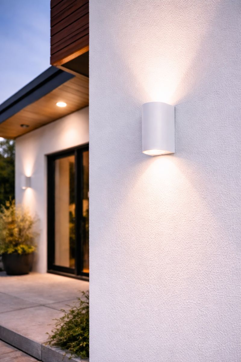 Světlo, které zvýrazní architekturu bez zbytečné dominance. Nástěnné svítidlo CENTURY AXO v bílém provedení se svícením nahoru a dolů vytváří symetrické světelné kužely, které elegantně modelují fasádu domu nebo stěnu v interiéru. Zaoblený tvar dodává svítidlu jemnější vzhled, zatímco bílá barva působí čistě, moderně a univerzálně. Díky krytí IP54 je svítidlo plně připravené i pro venkovní použití.