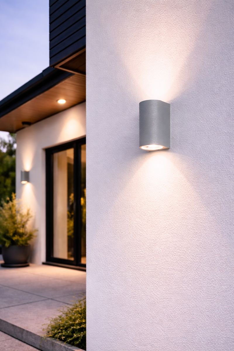 Čistý design a vyvážený světelný efekt. Nástěnné svítidlo CENTURY AXO v šedém provedení se svícením nahoru a dolů vytváří symetrické světelné kužely, které decentně zvýrazní fasádu domu nebo stěnu v interiéru. Zaoblený tvar změkčuje celkový vzhled svítidla, zatímco neutrální šedá barva působí moderně a univerzálně. Díky krytí IP54 je svítidlo vhodné i pro venkovní použití bez kompromisů.