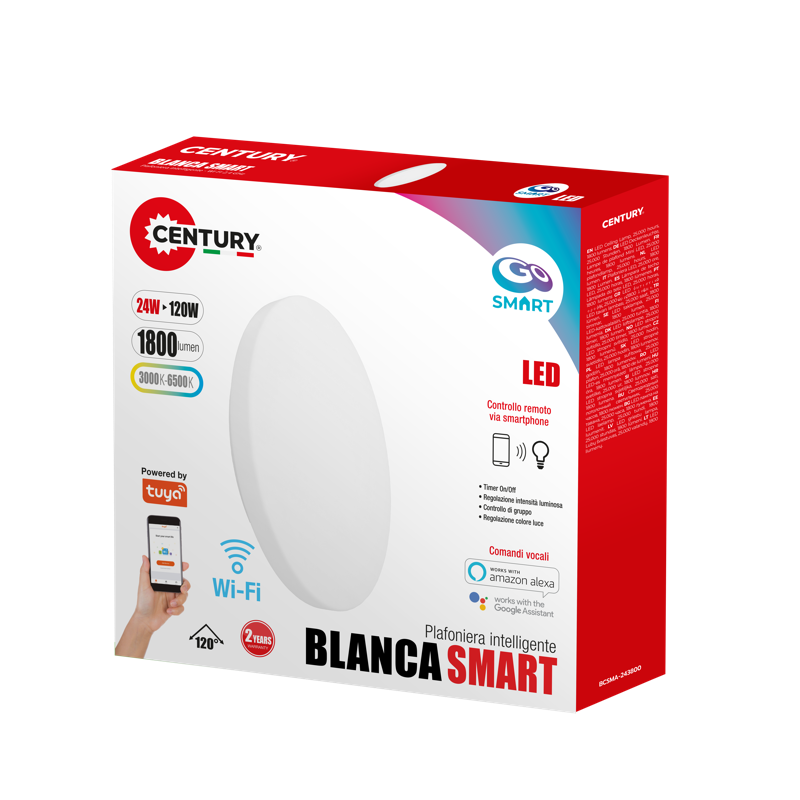 Čistota tvaru, funkčnost a moderní technologie v jednom. Stropní svítidlo CENTURY BLANCA SMART LED vyniká elegantním bílým provedením a ultra plochým profilem, díky kterému dokonale splyne se stropem. Nabízí chytré ovládání a možnost plynule měnit teplotu světla – od teplé atmosféry až po jasné denní osvětlení. Ideální volba pro moderní domácnosti i stylové pracovní prostory.