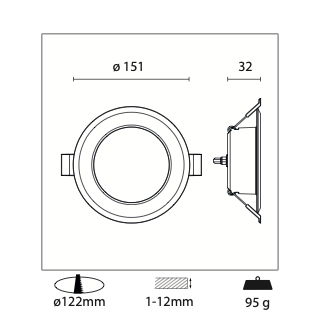 - Rozměry: průměr 151 mm, výška 32 mm – nízkoprofilové provedení