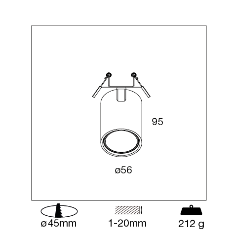 Zapuštěné svítidlo. Držák reflektoru GU10 z hliníku se základnou pro kruhový objezd.