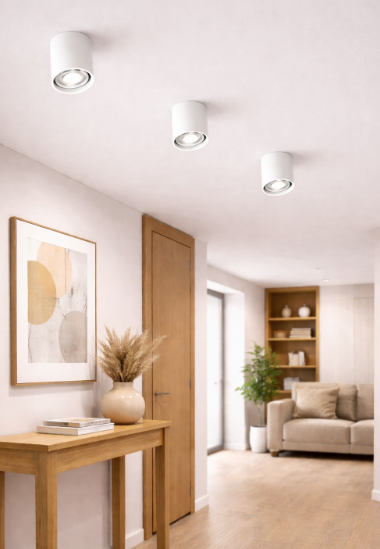 Díky směrovatelné hlavici můžete světlo nasměrovat přesně tam, kde jej potřebujete – nad pracovní plochu, obraz, kuchyňskou linku nebo jako bodové osvětlení chodby. Bílé provedení navíc opticky splývá se stropem a zachovává vzdušnost prostoru.