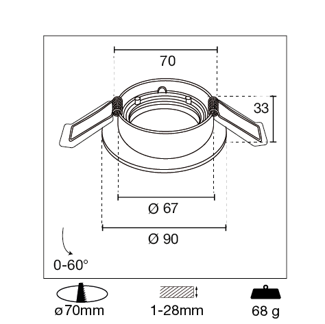 Žárovkové svítidlo na žárovku GU10 do podhledu na klipy. Součástí balení je držák na žárovku GU10. Výklop 60°.