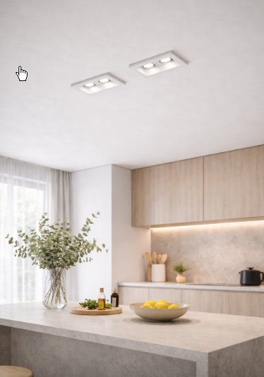 Vestavné sádrové svítidlo CENTURY JESSY2 přináší elegantní řešení pro ty, kteří chtějí více světla bez narušení minimalistického vzhledu stropu. Bezrámečková konstrukce umožňuje zapuštění přímo do sádrokartonu a po finálním začistění svítidlo dokonale splývá s okolní plochou. Dvojitý světelný otvor vytváří vyvážené a efektivní osvětlení prostoru, které působí čistě, moderně a profesionálně.