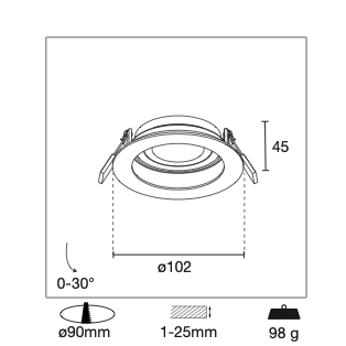 Žárovkové svítidlo na žárovku GU10 do podhledu na klipy. Součástí balení je držák na žárovku GU10. Výklopné o 30°.