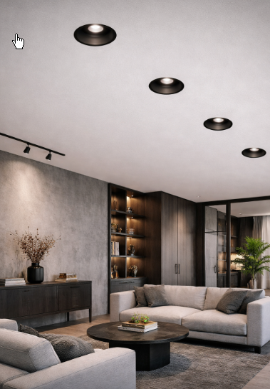 Černý rámeček působí elegantně a zároveň technicky, což z něj dělá ideální volbu pro moderní, industriální i kontrastní interiéry. Vestavná montáž zajišťuje, že svítidlo nenarušuje vzhled stropu a zůstává vizuálně čisté.