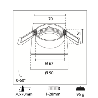 Žárovkové svítidlo na žárovku GU10 do podhledu na klipy. Součástí balení je držák na žárovku GU10. Výklopné o 30°.