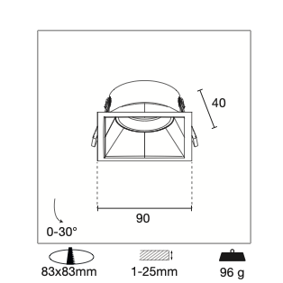 Žárovkové svítidlo na žárovku GU10 do podhledu na klipy. Součástí balení je držák na žárovku GU10. Výklopné o 30°.