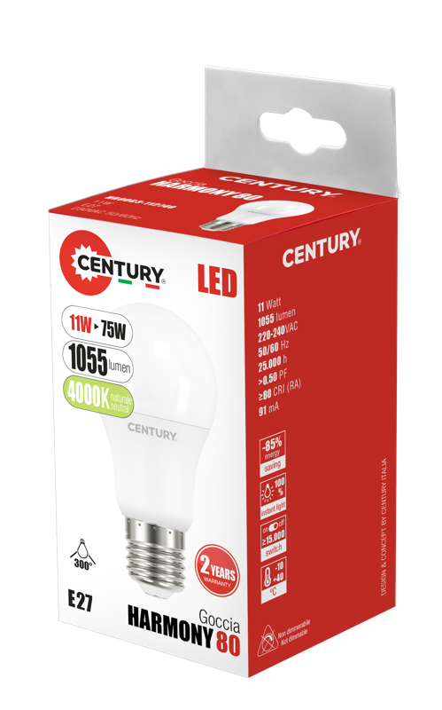 CENTURY LED A60 HARMONY 80 11W E27 4000K 1055Lm 300d 60x112mm IP20