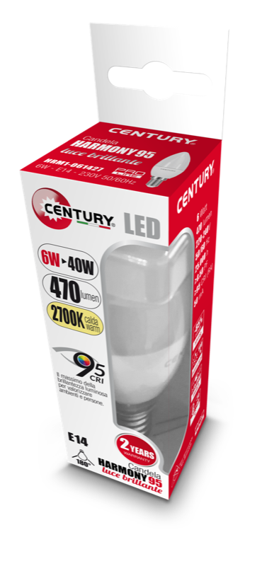Jedinečná řada Harmony95 vyniká vysokým podáním věrností barev díky speciálně navrženým čipům CRI≥95. Kvalitní LED žárovky této série Harmony95 charakterizují formy s klasickým designem a 90% úsporou energie. Teplota chromatičnosti 2700K podporuje intimní a sugestivní atmosféru. Proto jsou vhodné do svítidel či lampiček v interiéru nejen v domácnosti. Díky patici E14 je vhodná do většiny lampiček a závěsných lustrů.