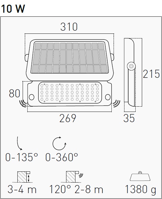 Silnější a stále úsporné řešení pro fasády a vstupní prostory: CENTURY LED DIVERSO 10W je solární nástěnné svítidlo navržené pro automatický provoz bez přívodu elektřiny. Díky světelnému toku 1080 lumenů poskytuje výraznější osvětlení oproti základní variantě a je vhodné i pro větší vstupy či širší chodníky.