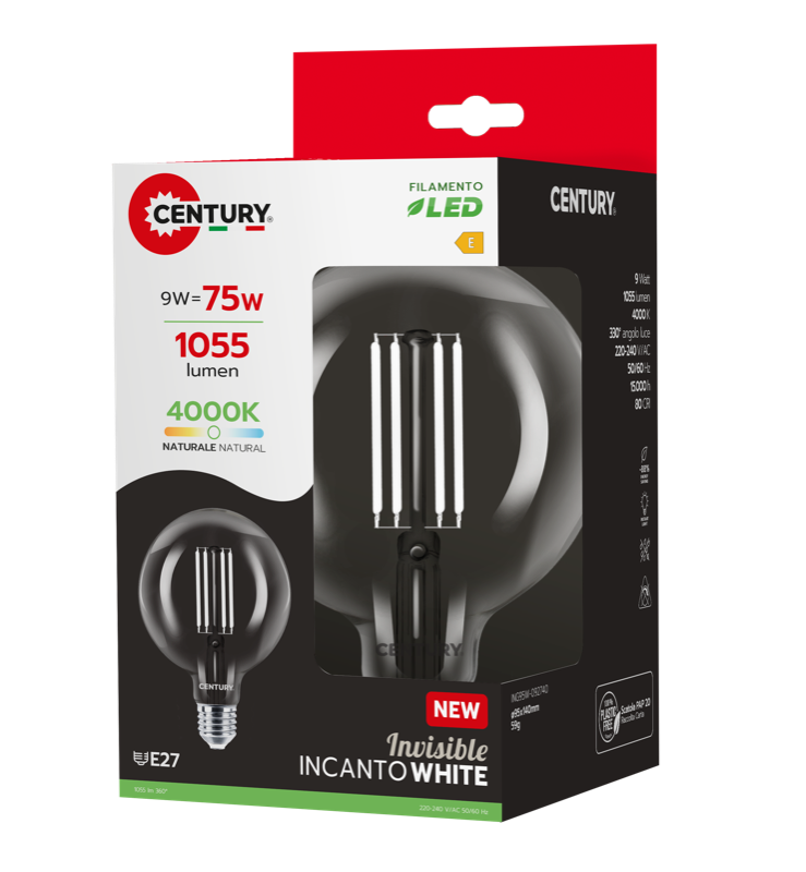 Představujeme vám kvalitní žárovku s bílým vláknem CENTURY FILAMENT LED GLOBE E27 - ING95W-092740. Tato žárovka je výsledkem italské řemeslné kvality od renomovaného výrobce CENTURY, který se může pochlubit dlouhou historií a pevným zázemím.