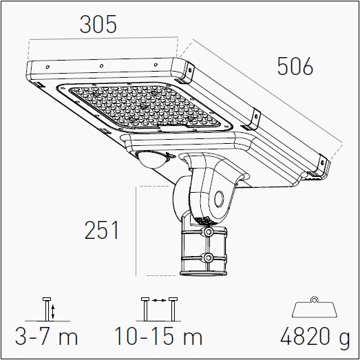- Napájení: solární + síť 100–277V/AC