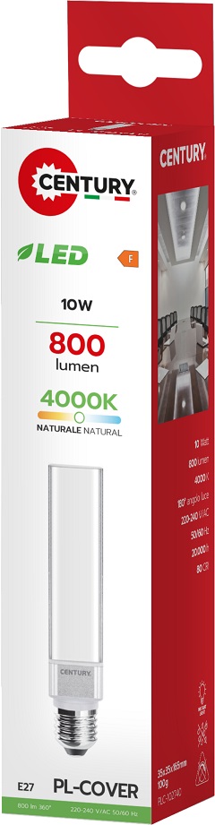 LED žárovka CENTURY LED PLC 10W E27 je praktickým řešením pro moderní a úsporné osvětlení domácností i komerčních prostor. Díky světelnému toku 800 lumenů poskytuje dostatek světla pro běžné použití, zatímco neutrální barva světla 4000 K vytváří přirozené a příjemné osvětlení vhodné jak pro práci, tak pro každodenní aktivity. Standardní patice E27 zajišťuje snadnou instalaci do většiny běžných svítidel.