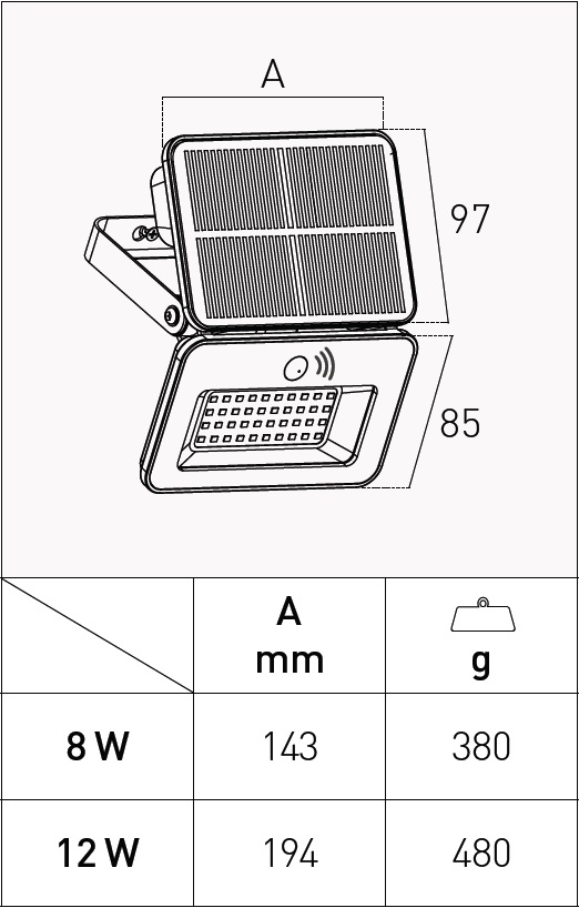 - Typ: solární LED reflektor
