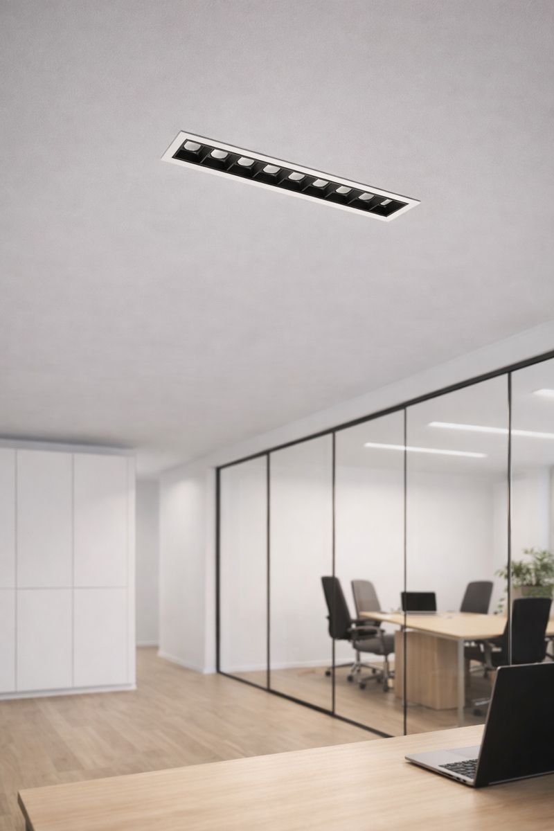 Minimalismus, který pracuje se světlem do posledního detailu. Zápustné svítidlo CENTURY MINIMAL je navrženo pro moderní interiéry, kde hraje roli čistota linií, vizuální klid a precizní světelný efekt. Lineární tvar s vícenásobnými optikami vytváří rovnoměrné, ale zároveň směrované osvětlení, které působí profesionálně a nadčasově.
