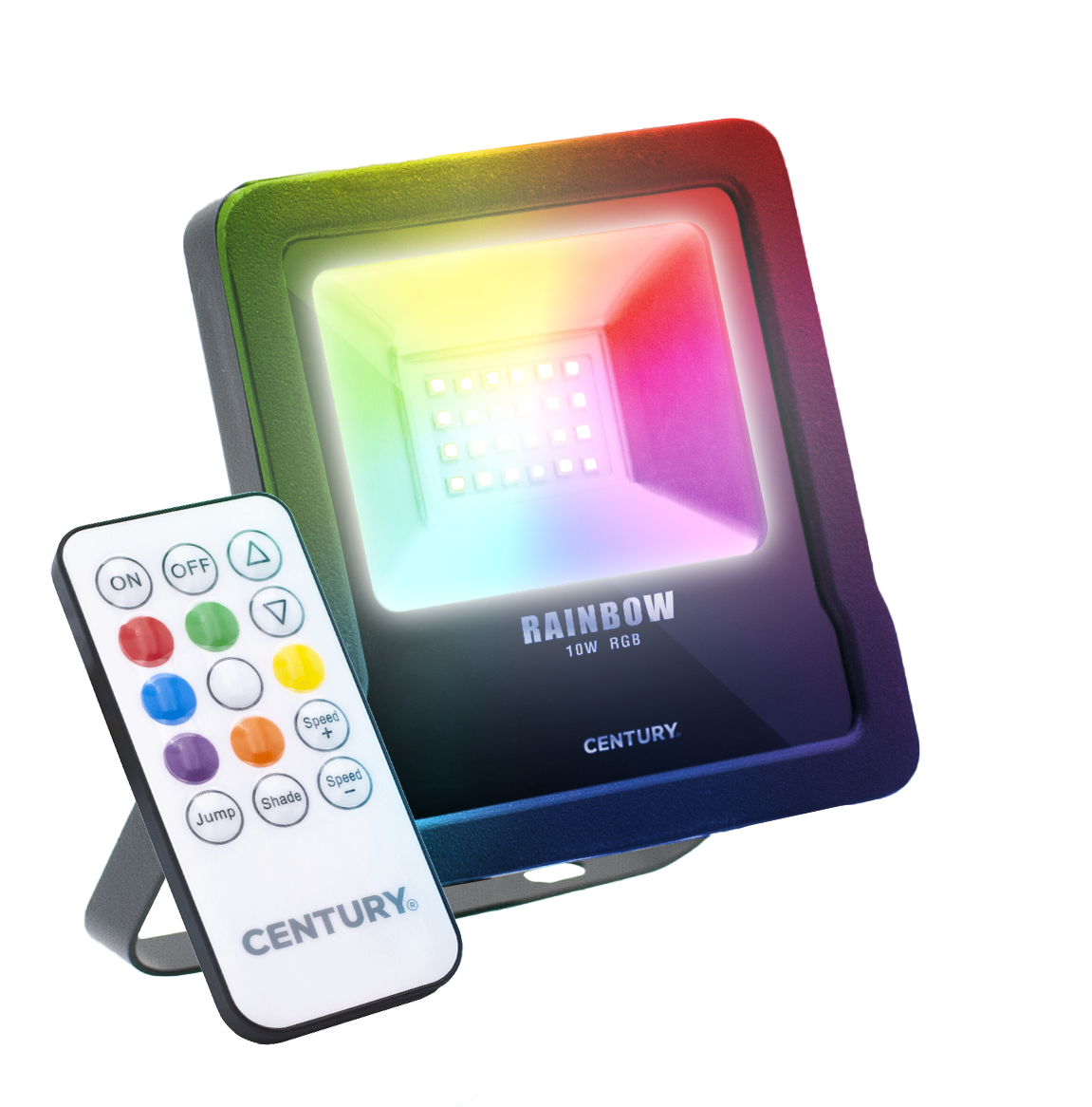 RAINBOW je RGB venkovní světlomet ideální pro vytváření jedinečných scén. Pomocí dodávaného rádiového dálkového ovladače je možné změnit barvu nebo si vybrat z mnoha světelných programů. Možnost ztlumení/stmívání svícení ovladačem.