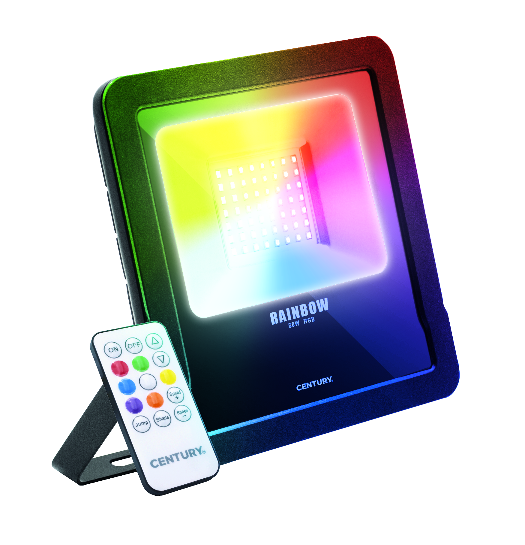 RAINBOW je RGB venkovní světlomet ideální pro vytváření jedinečných scén. Pomocí dodávaného rádiového dálkového ovladače je možné změnit barvu nebo si vybrat z mnoha světelných programů. Možnost ztlumení/stmívání svícení ovladačem.