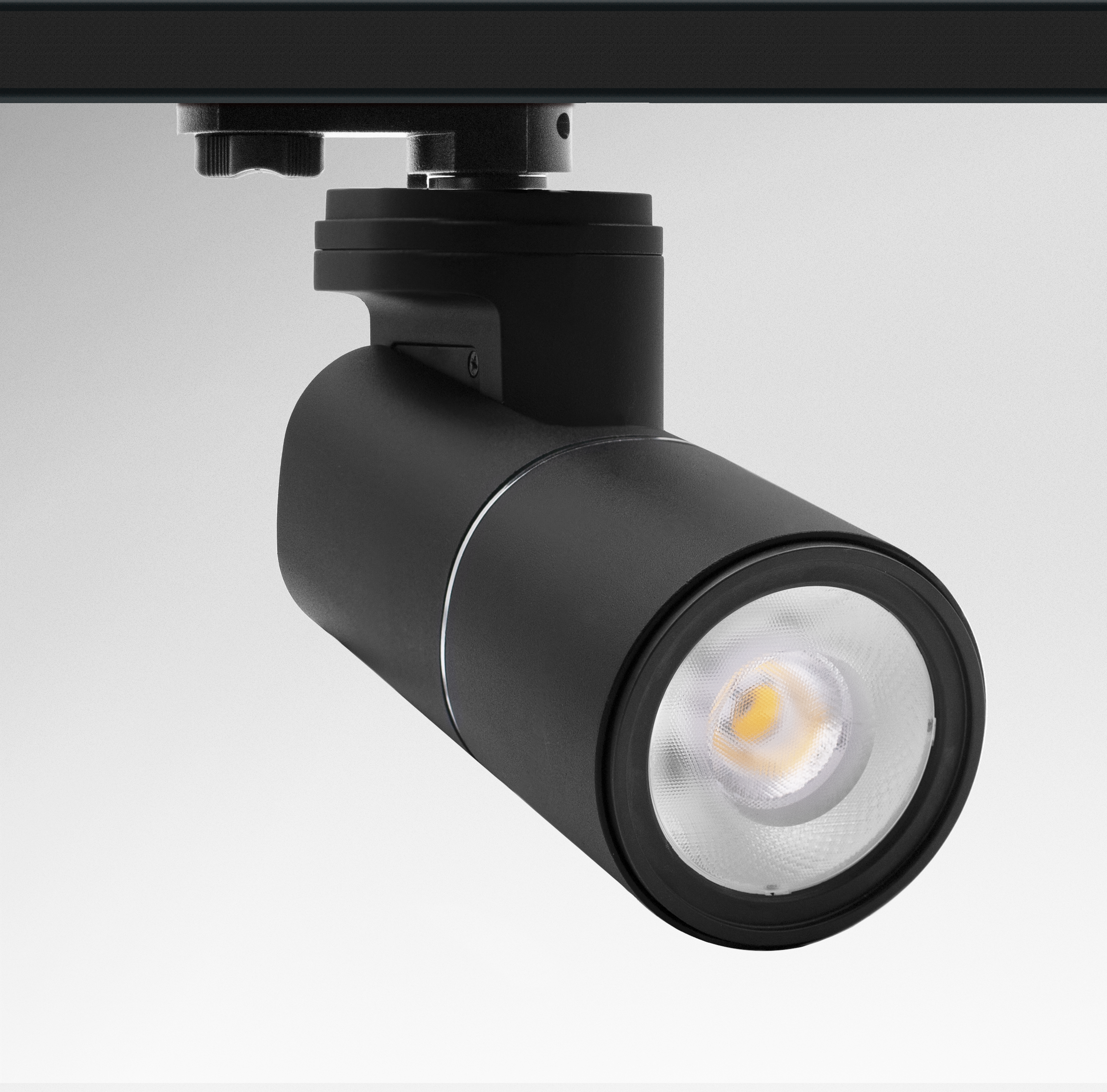 LED svítidlo na dráhu. Vysoce výkonný Eurotrack. Tělo kloubové umožňuje nasměrovat a svítit optimálně.