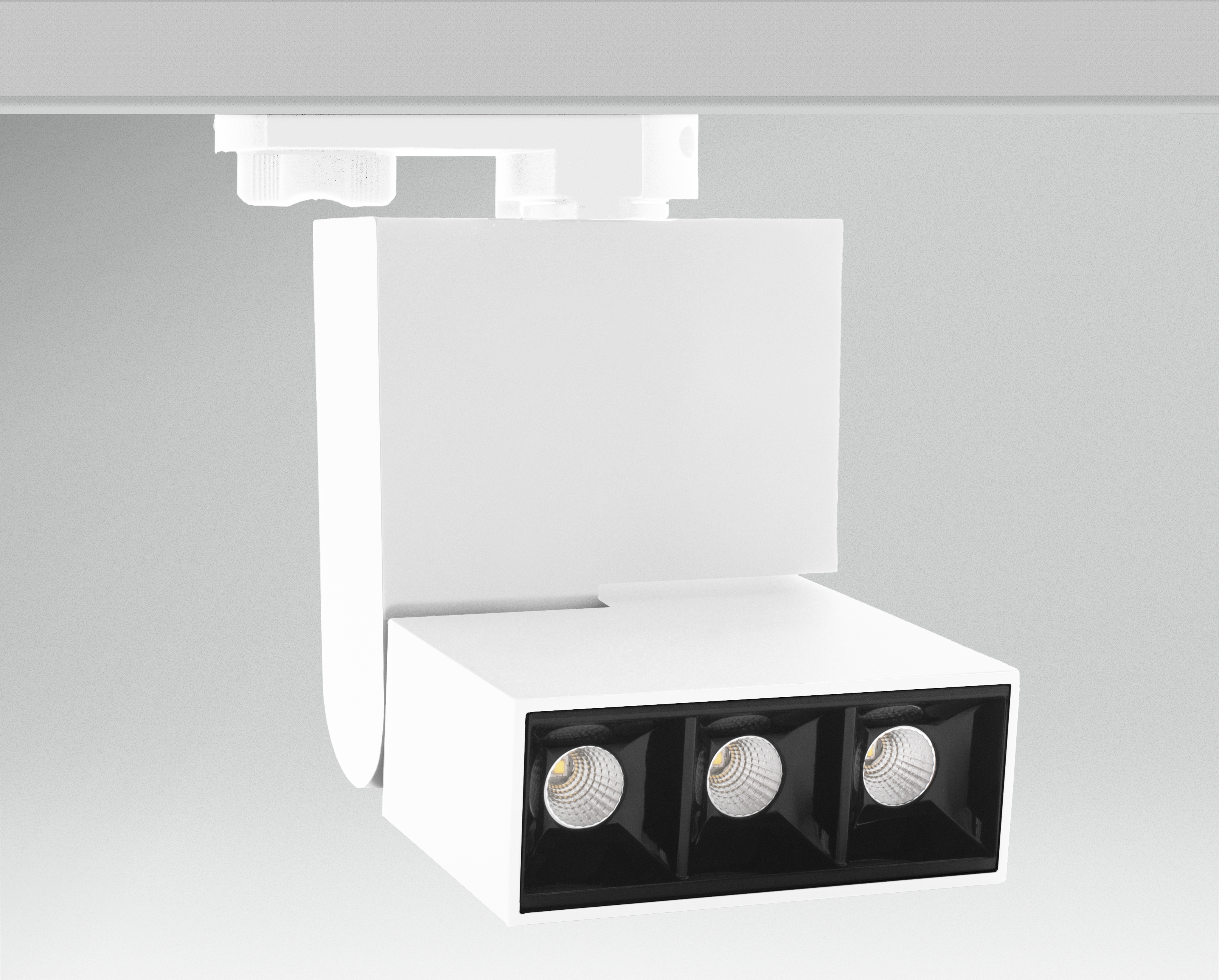 LED svítidlo do 3F kolejnice/lišty. Vysoce výkonný Eurotrack. Kloubové tělo pro soustředěné a směrové světlo, reflektor.