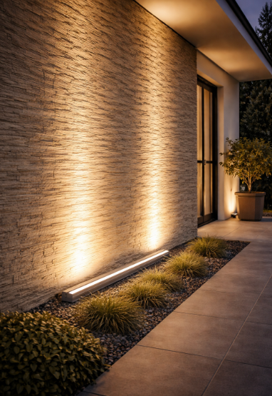 ✔️ Teplá bílá 3000K – zvýrazní strukturu kamene i omítky