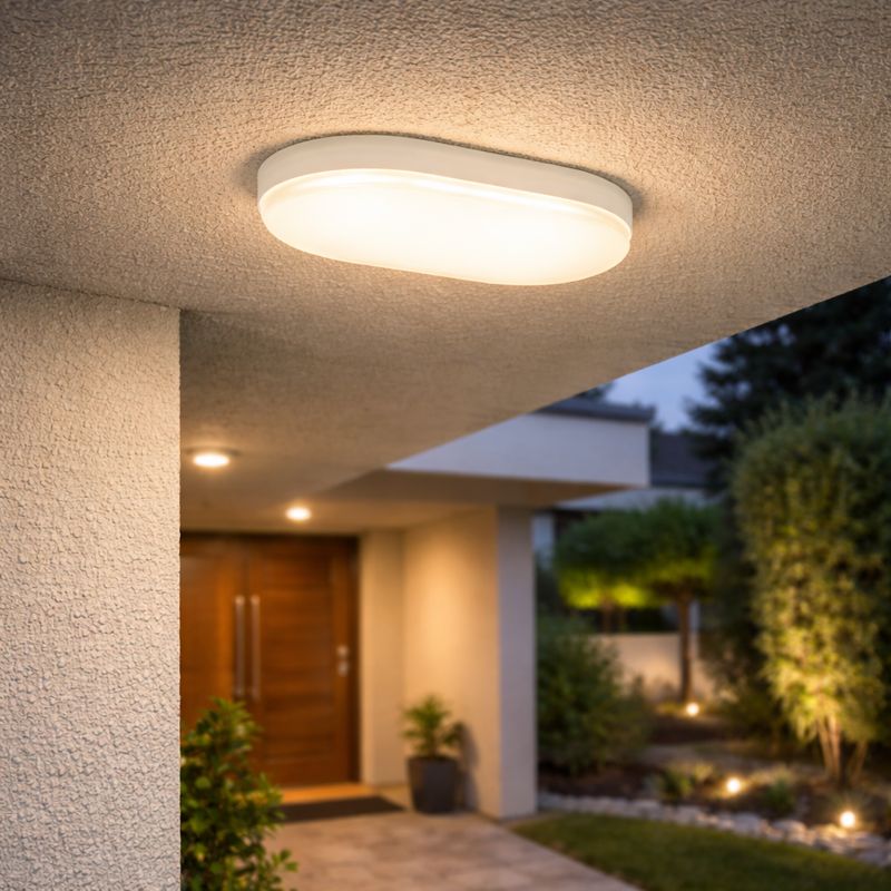 Praktické řešení bez zbytečných kompromisů: stropní LED svítidlo CENTURY Simply nabízí spolehlivé osvětlení s důrazem na funkčnost, odolnost a jednoduchý design. Oválný tvar v bílém provedení působí nenápadně a univerzálně, zatímco teplé světlo vytváří příjemné prostředí v interiéru i chráněném exteriéru. Díky vysokému krytí IP65 je svítidlo připravené i na náročnější podmínky.