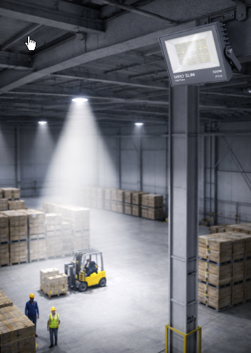 LED reflektor CENTURY SIRIO SLIM 300W s vyzařovacím úhlem 90° je navržen pro rovnoměrné osvětlení velkých průmyslových prostor. Se světelným tokem 35 500 lumenů poskytuje silné a plošné světlo vhodné pro skladové haly, výrobní provozy i rozsáhlé venkovní plochy.