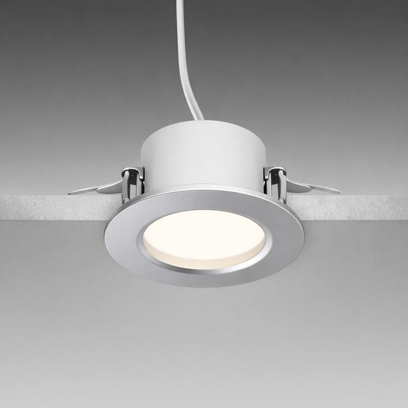 Detail, který dotváří celek. Vyměnitelný kruhový kryt CENTURY SPOT 65 ve stříbrném provedení slouží jako designový doplněk pro vestavná svítidla řady SPOT 65. Umožňuje snadno přizpůsobit vzhled svítidla interiéru nebo barevnému konceptu prostoru, aniž by bylo nutné měnit celé svítidlo.