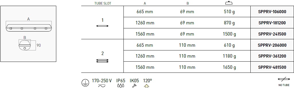 Spolehlivé řešení pro náročné podmínky: CENTURY LED SUPREMA-RV stropní svítidlo 665 mm je navrženo pro prostředí, kde je potřeba zvýšená odolnost proti prachu, vlhkosti a mechanickému poškození. Krytí IP65 zajišťuje ochranu proti vodě a prachu, zatímco odolnost IK05 chrání svítidlo proti běžným nárazům. Svítidlo je určeno pro instalaci s jednou LED trubicí T8, která není součástí balení – můžete si tak zvolit výkon i barvu světla podle konkrétního prostoru.