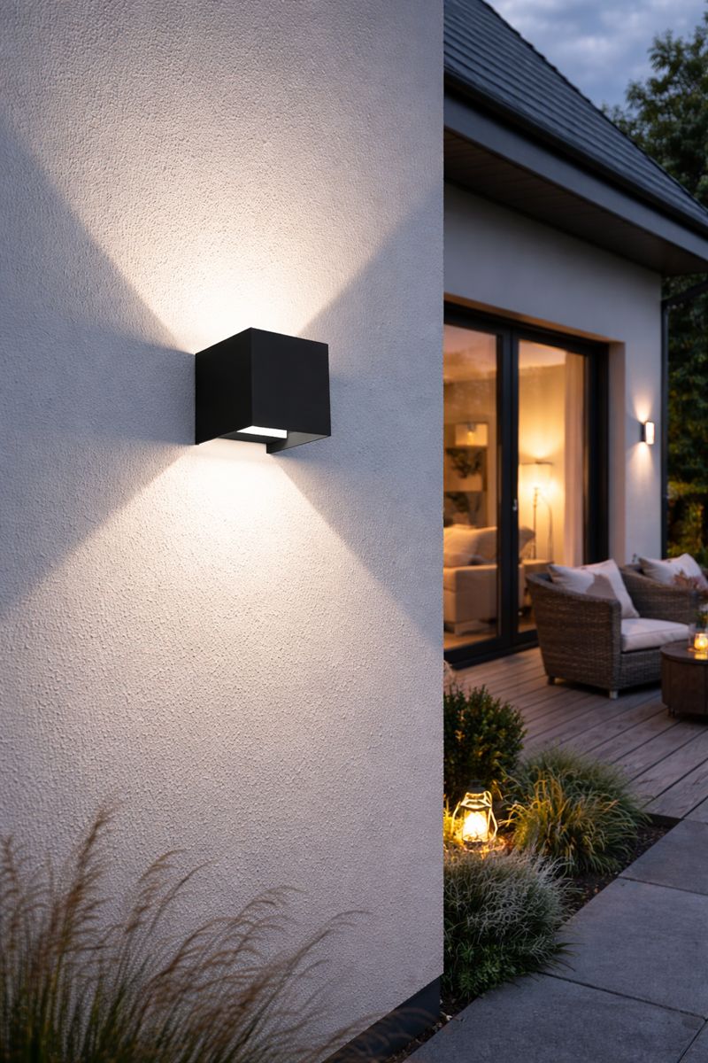 Minimalismus, který má efekt: nástěnné LED svítidlo CENTURY Up&Down v černém provedení zaujme čistou kubickou formou a působivým světelným kuželem směrem nahoru i dolů. Díky modernímu designu a kompaktním rozměrům se skvěle hodí k nasvícení fasád, vstupních prostor i moderních interiérů, kde vytváří příjemnou a zároveň reprezentativní atmosféru.