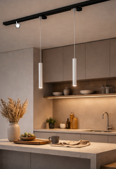 Štíhlý tubusový tvar působí minimalisticky a elegantně, zatímco úzký vyzařovací úhel 24° umožňuje cílené nasvícení konkrétní plochy – například kuchyňského ostrůvku, pracovního stolu nebo barového pultu. Zavěšení na tenkém kabelu dodává prostoru lehkost a moderní architektonický výraz.