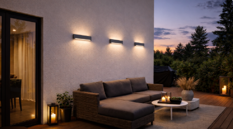 Díky širokému úhlu svícení poskytuje rovnoměrné světlo směrem dopředu, které je ideální pro nasvícení teras, stěn nebo vstupních prostor bez ostrých přechodů.