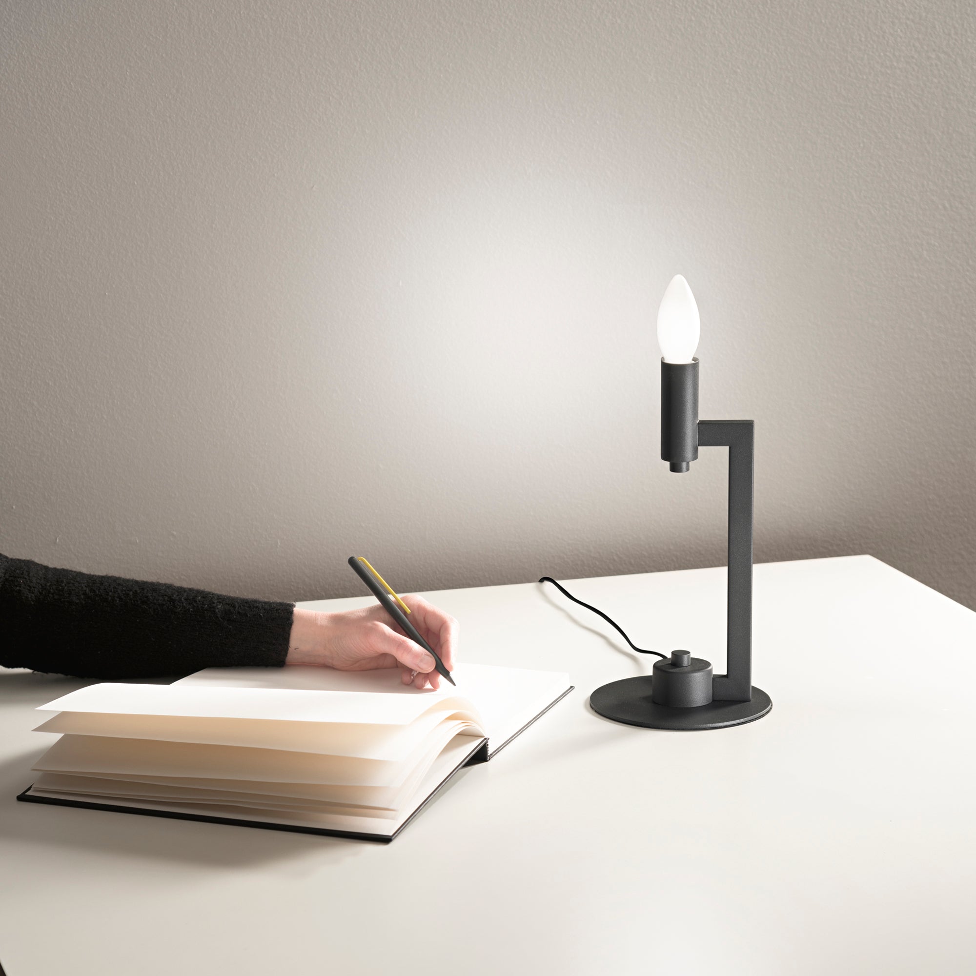 Stolní lampa KAROL přináší do vašeho prostoru elegantní minimalismus a sofistikovanou atmosféru. Její saténově břidlicově šedý kov vypadá velmi moderně a zároveň vnáší do místnosti příjemnou tlumenou barvu, která je ideální pro práci, čtení nebo relaxaci. Tato lampa není jen praktickým osvětlením, ale i designovým prvkem, který dokonale doplňuje jakýkoli interiér – od kanceláře po obývací pokoj či noční stolek.