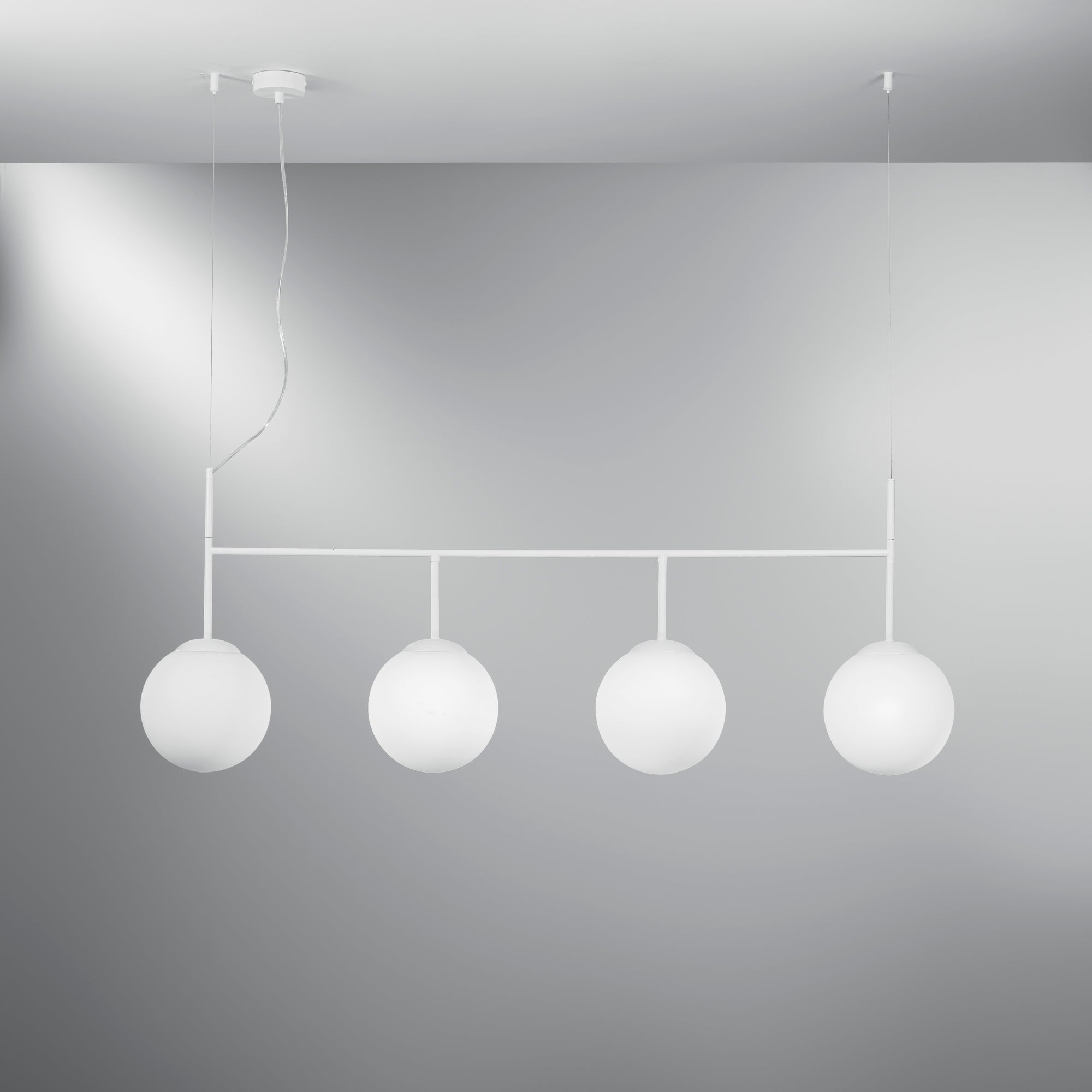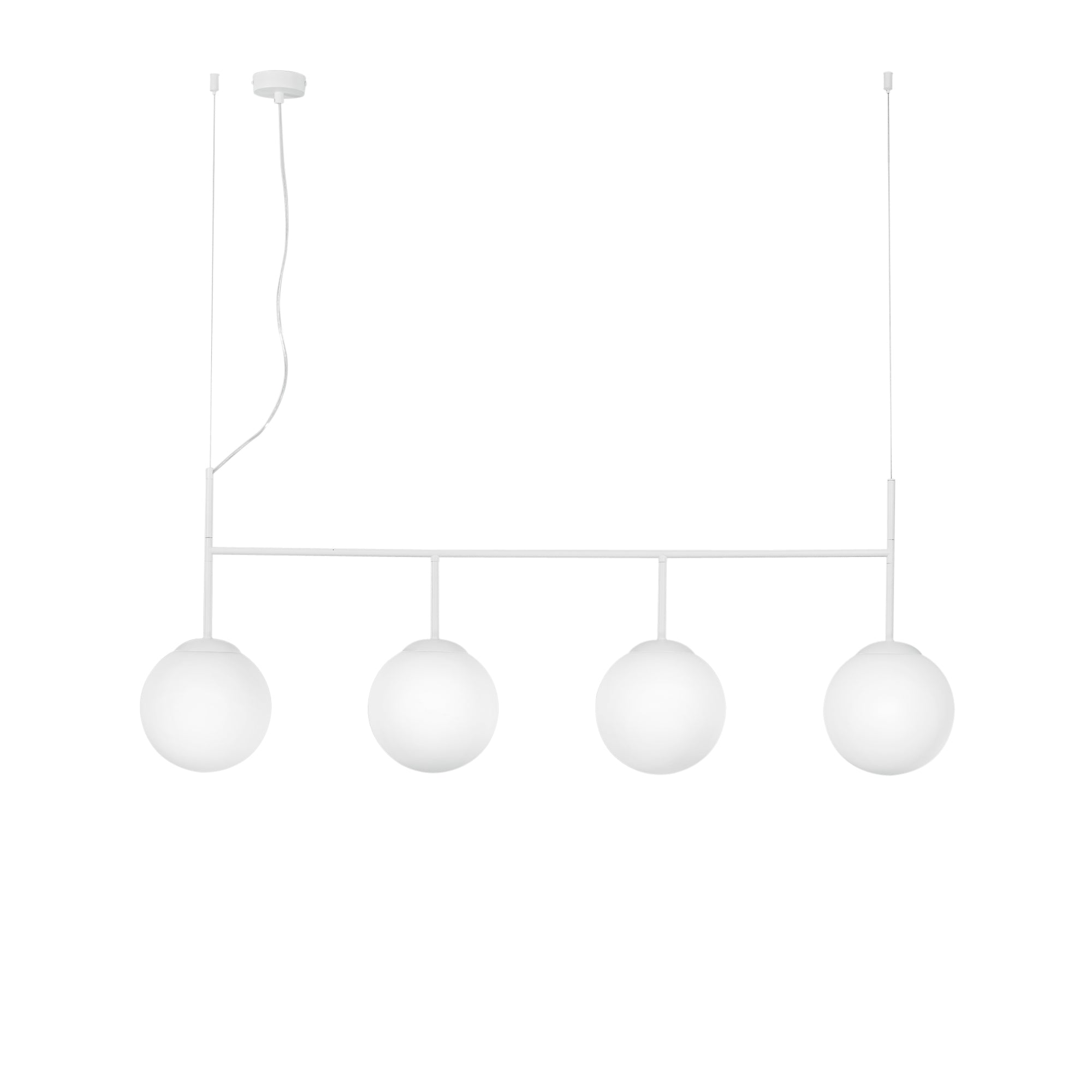 Toto závěsné svítidlo kombinuje moderní eleganci a výjimečný design. Matná bílá kovová konstrukce tvoří luxusní základ, zatímco čtyři opálové skleněné kuličky dodávají svítidlu hravost a jemnost. BALY vnese do vašeho prostoru hřejivou atmosféru a okamžitě zaujme každého návštěvníka.