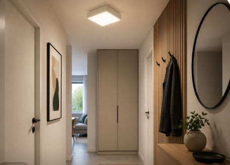 - Rozměry: cca 167 × 167 × 50,5 mm – kompaktní řešení pro stropní instalaci