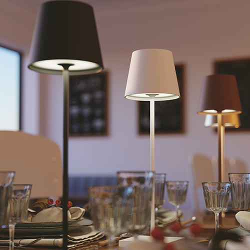Přineste do svého exteriéru útulnou atmosféru a praktičnost s LED stolní nabíjecí lampou DRINK od renomovaného italského výrobce FAN EUROPE. Tato elegantní černá lampa není jen prostředkem k osvětlení vašeho venkovního prostoru, ale také přináší do vašich večerů nádhernou atmosféru a pohodu. Nabíjecí stolní lampa na venkovní stůl s odolností proti vodě a prachu díky krytí IP54.