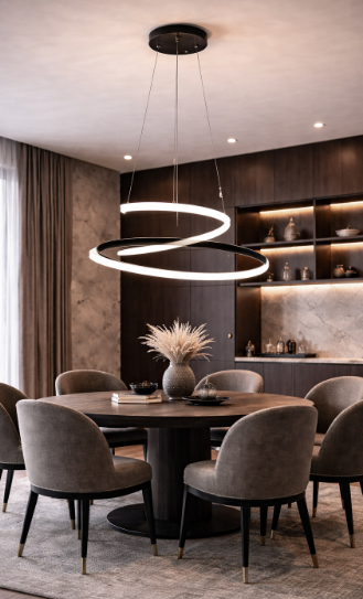 Výrazný design s architektonickým charakterem. Závěsné LED svítidlo FAN Europe COASTER v černém provedení zaujme plynulou spirálou, která se vznáší v prostoru a vytváří silný vizuální efekt. Černá barva dodává svítidlu hloubku, kontrast a moderní eleganci. V kombinaci s vysokým světelným výkonem a technologií CCT je ideální volbou pro interiéry, kde má osvětlení nejen svítit, ale i definovat prostor.