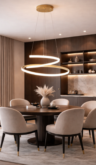 Design, který se vznáší v prostoru. Závěsné LED svítidlo FAN Europe COASTER ve zlatém provedení zaujme elegantní spirálou, která působí lehce, dynamicky a velmi luxusně. Díky závěsnému řešení a výraznému průměru se stává nepřehlédnutelným centrálním prvkem interiéru. Vysoký světelný výkon v kombinaci s technologií CCT zajišťuje nejen vizuální efekt, ale i maximální funkčnost.