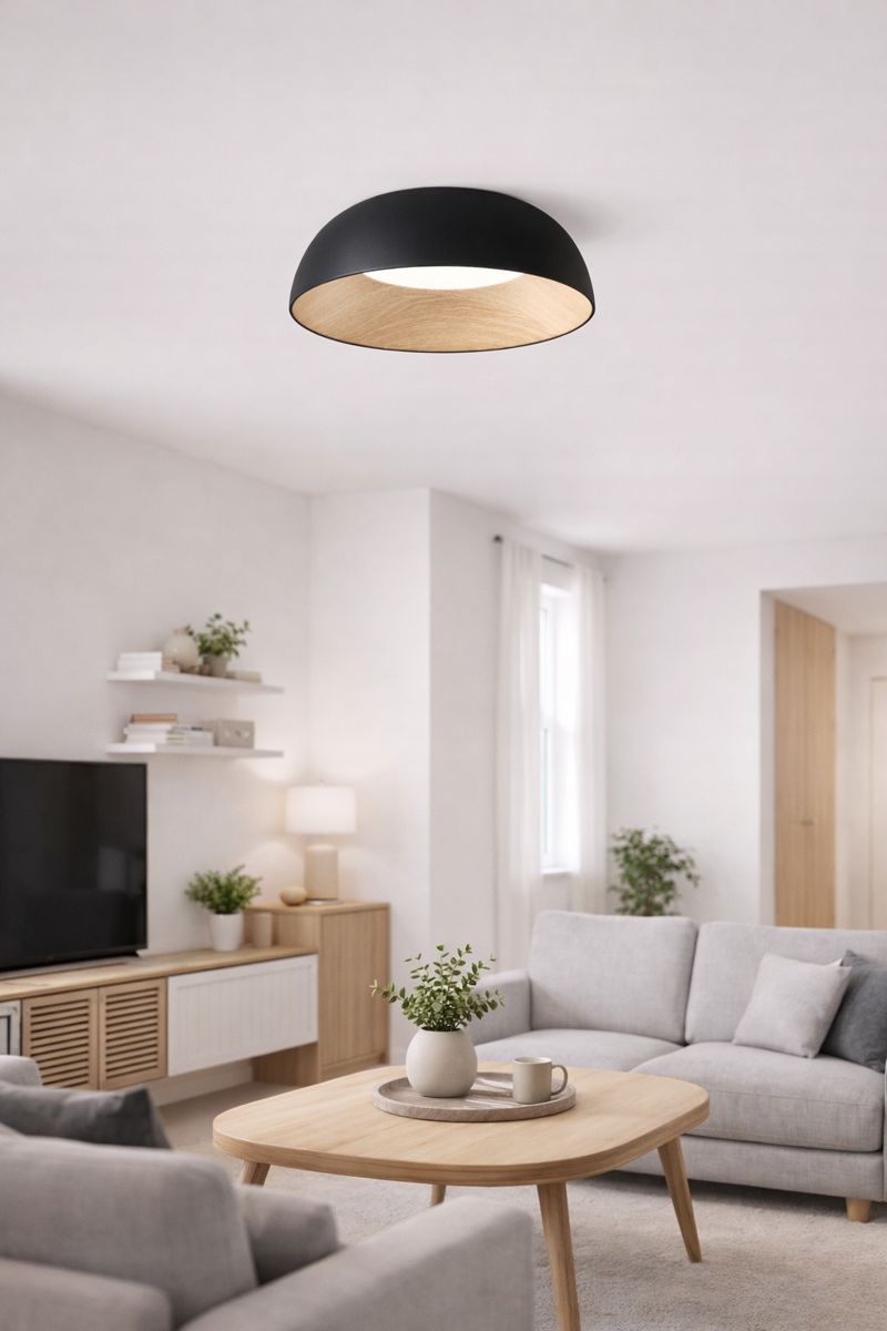 Minimalistické řešení s příjemným detailem: stropní LED svítidlo FAN Europe COCO nabízí elegantní alternativu k závěsným variantám této oblíbené kolekce. Polokulový tvar v matné černé barvě doplněný vnitřním dekorem dřeva působí moderně, čistě a zároveň hřejivě. Svítidlo je navrženo jako funkční i designový prvek, který přirozeně zapadne do současných interiérů.