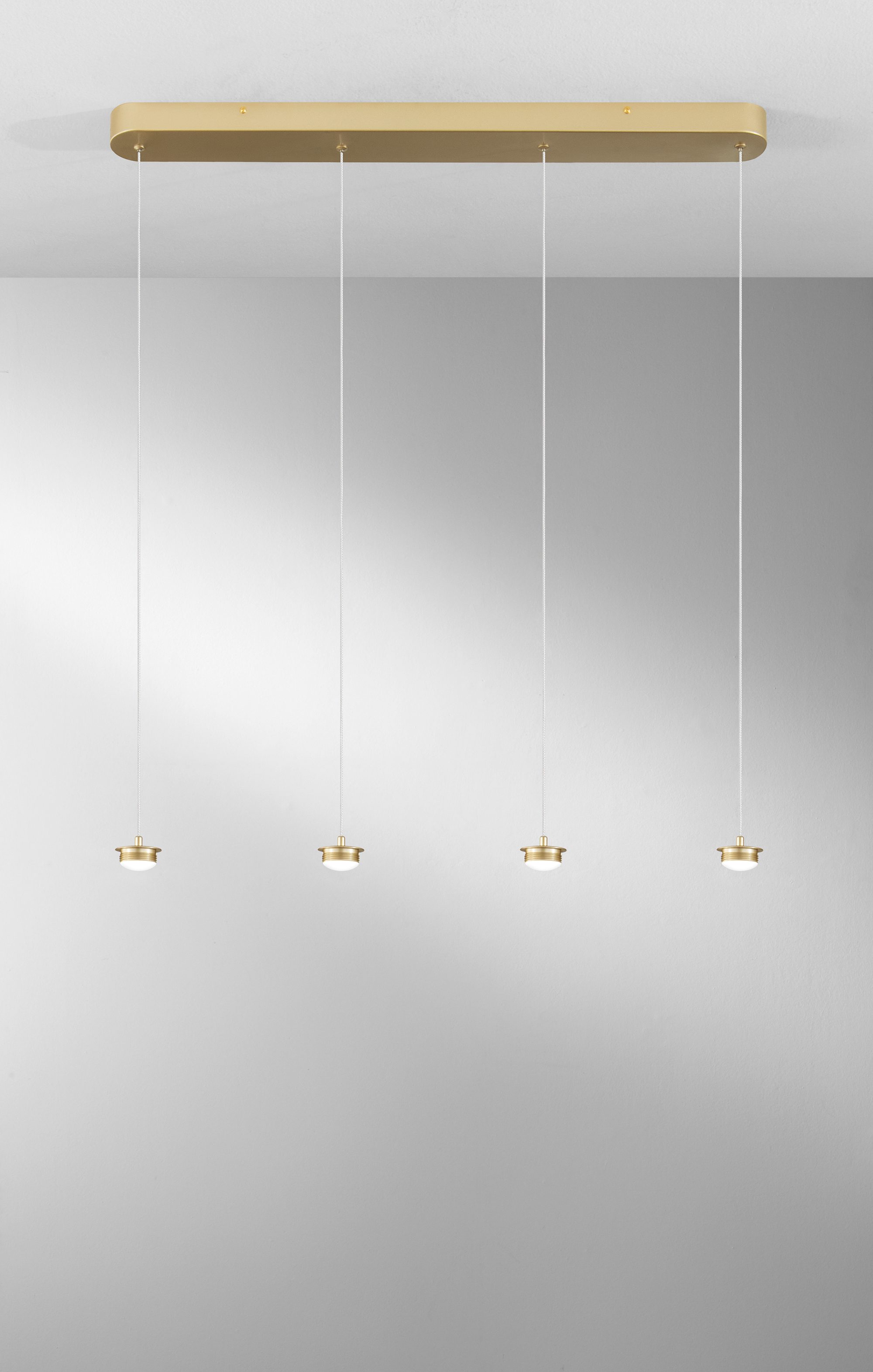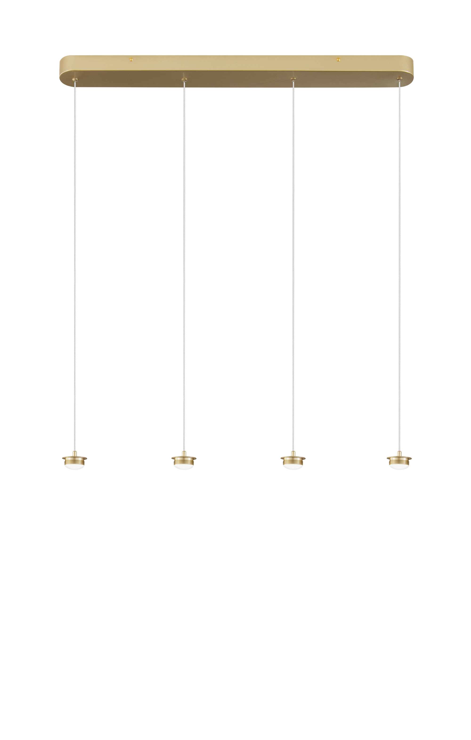 Závěsné svítidlo GISELLE od značky FAN Europe v lineárním provedení přináší sofistikované řešení osvětlení nad jídelní stůl nebo kuchyňský ostrůvek. Podlouhlá stropní základna v elegantní zlaté barvě nese několik samostatně zavěšených světelných bodů, které vytvářejí vzdušnou a harmonickou kompozici.
