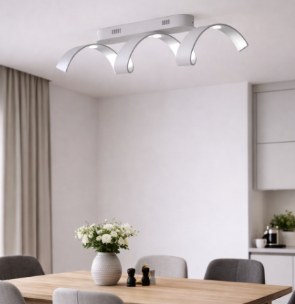 Stropní svítidlo HELIX od značky FAN Europe přináší ikonický vlnitý design v praktickém přisazeném provedení. Kombinace bílé konstrukce a stříbrných detailů působí čistě, lehce a nadčasově, díky čemuž se svítidlo snadno začlení do moderních kuchyní, jídelen i obývacích prostor.